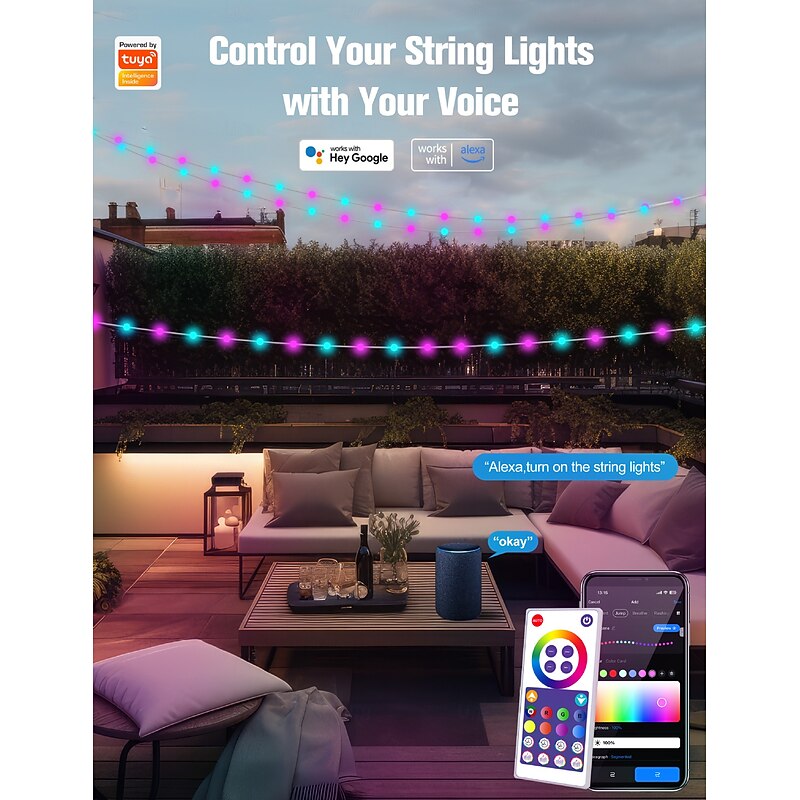 More information about Elegant Wedding Party Reception Dimmable RGBIC LED String Lights with App Control Waterproof for Outdoor Use Perfect for Festival Decor 5/10/15/20M