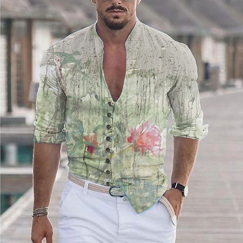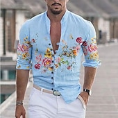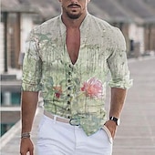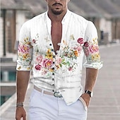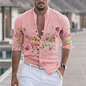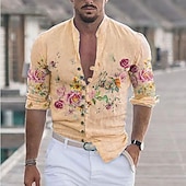 More information about Men's Floral Graphic Prints Shirt Long Sleeve Shirt Stand Collar Outdoor Street Black White Yellow Light Green Pink Print Clothing Apparel Fashion Streetwear Designer Casual
