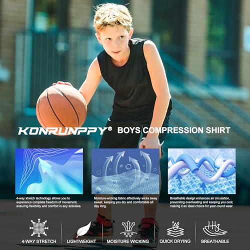 Fabric type: 85% Polyester, 15% SpandexCare instructions: Machine WashOrigin: ImportedClosure type: Pull OnCompression Fit for Boys: Designed with high-performance compression fabric, this youth boys' sleeveless compression shirt provides a snug yet flexible fit, ensuring optimal muscle support during sports like basketball, football, and baseballQuick-Dry & Moisture-Wicking: Made with breathable,four-way stretch, lightweight 85% Polyester,15% spandex fabric, this youth compression shirt features quick-dry and moisture-wicking technology, keeping your kids cool and snug during workouts or hot weatherTag-free: Featuring a compression and crew neck design for sports, this youth kids tank tops with smooth flat seams and a tagless design contribute to reducing abrasion and enhancing overall comfortAthletic Design: Ideal for sports and activities such as basketball,soccer,hockey, running, training, and swimming, this boys athletic tank top serves as both a workout essential and a base layer for any training,offers enhanced flexibility and comfort for all-day wear during sports activitiesSize and Fit: XS=US Size 5 (Height:43.3-45.2inch) /Small=US Size 6-7 (Height:47.2-49.2inch)/ Medium=US Size 8 (Height:49.2-53.1inch) / Large=US Size 10 (Height:55.1-57.1inch) / X-Large=US Size 12 (Height:59.0-61.0inch),Available in a range of sizes, including US Size 5-12, Its fitted design ensures comfort, making it perfect for big kids and teens Perfect for everyday use. superior materials and excellent craftsmanship ensure long-lasting durability.