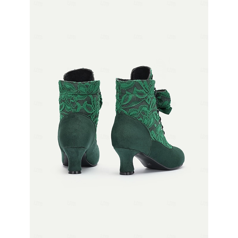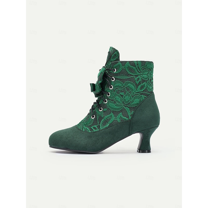 : Expertly crafted from a combination of luxurious lace, faux suede, and PU, these Victorian ankle boots feature a delicate floral lace overlay that accentuates their retro charm. The rich suede provides a plush texture, while the high-quality textile lining ensures a comfortable fit.
