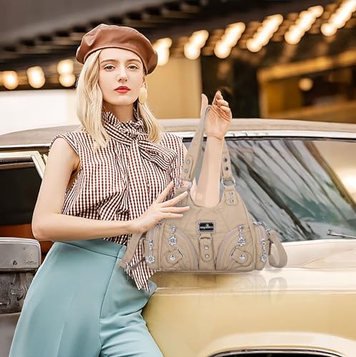 Angel Kiss Purses for Women Small Hobo Shoulder Bags Vagen Leather Multi-Pocket Tote Bag with Zipper 4