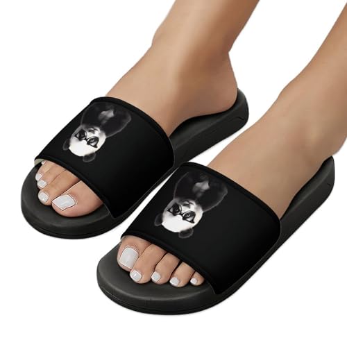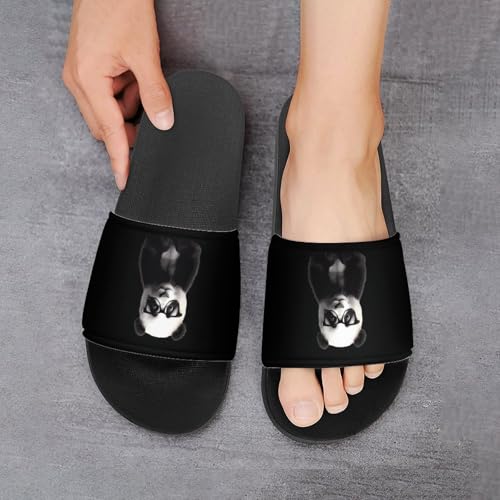 HOT ! Panda with Eye Glasses House Slippers for Women Men Lightweight Open-toe Slide Shoes for Bathroom Swimming Beach