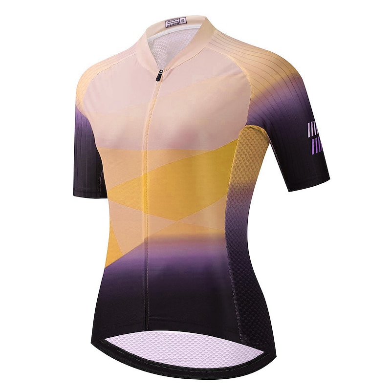 Women's Cycling Jersey Geometric Short Sleeve Bike Jersey Top with 3 Rear Pockets Mountain Bike MTB Road Bike Cycling Quick Dry Reflective Strips Back Pocket Moisture Wicking Sports Yellow Pink Red 19