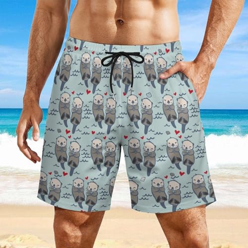 HOT ! Sea Otter Men's Swim Trunk Quick-Dry Shorts with Mesh Lining And Pockets