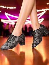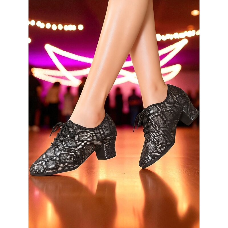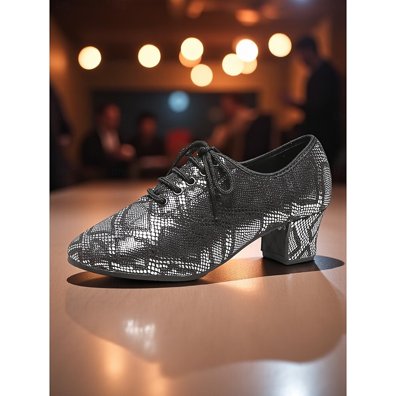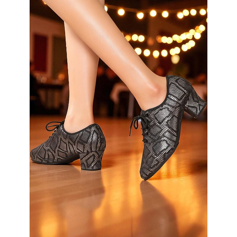 More information about Women's Beige Lace-Up Ballroom Dance Shoes - Low Heel Oxford Style Glitter Pattern Pumps for Professional Dance Party & Performances