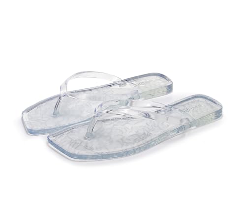 Jelly Sandals for Womens Flip Flops Thong Flat Jellies Shoes Clear Square Slides Size 10 Summer Beach Slipper Durable Quick Drying Soft 7