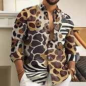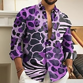 More information about Men's Leopard Zebra Print Shirt Button Up Shirt Long Sleeve Vintage Retro Outdoor Casual Holiday Spring Fall Turndown 3D Print Collared Shirts Blue Purple Brown