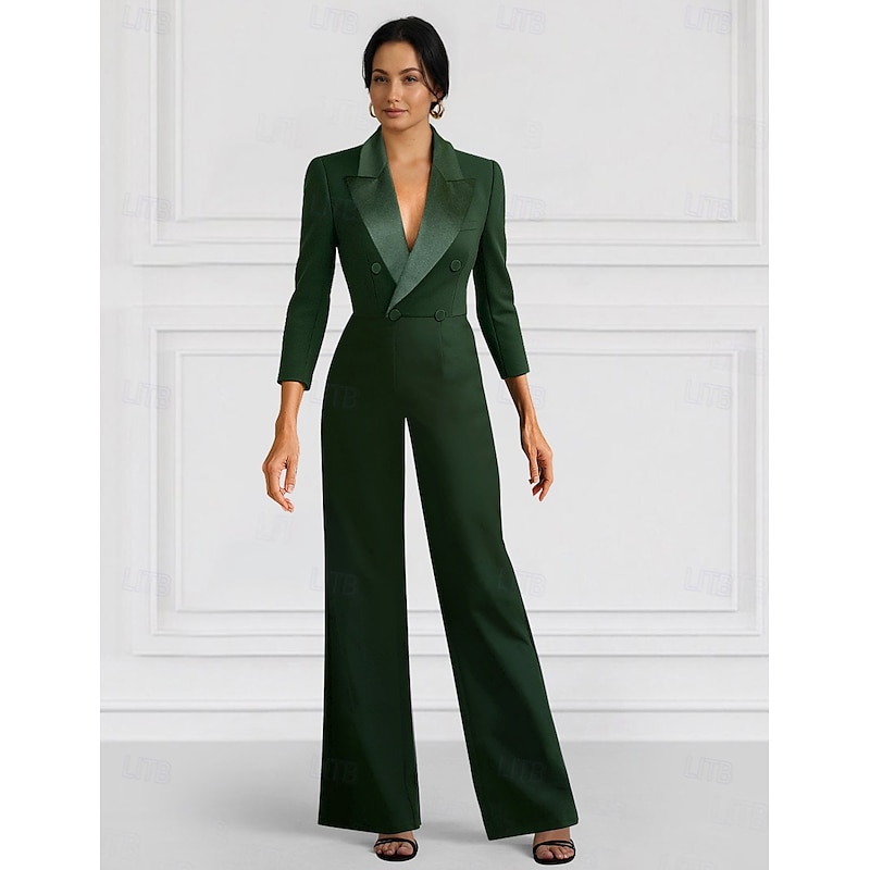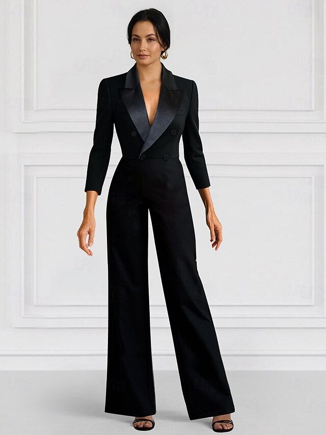 More information about Women's Suits Jumpsuits Formal Wedding Guest Stretch Crepe Elegant Minimalist 3/4 Sleeve Pleated Floor Length Peak Lapel Double Breasted
