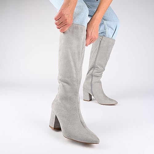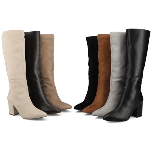• AMEYLIA KNEE HIGH BOOT: Introducing Ameylia by Journee Collection, the ultimate knee-high boot that effortlessly combines modern minimalistic style and unbeatable comfort. These boots boast a chic pointed-toe design and eye-catching center seam detail. With a walkable 3-inch block heel, 4 mm Tru Comfort Foam insole, and made from vegan leather, Ameylia ensures both style and ease of wear. Step out in confidence and make Ameylia your go-to wardrobe staple.