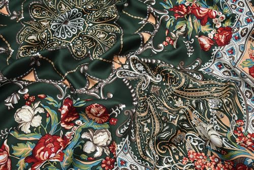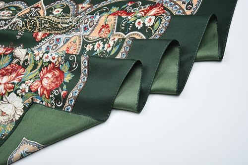 corciova XL Oversized Satin Scarf - 40x40 Inches Square in Dark Green Paisley Floral Print - Women's Fashion Scarf for Hair Wrap, Headband, Shirt Accessory & Bandana 6
