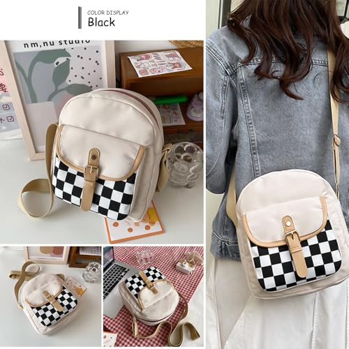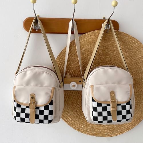 More information about Nylon Crossbody Bag for Girl Boy, Checkered Pattern Front Pocket, Multi-Pocket Shoulder Bag Handbag Purse