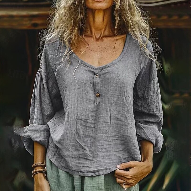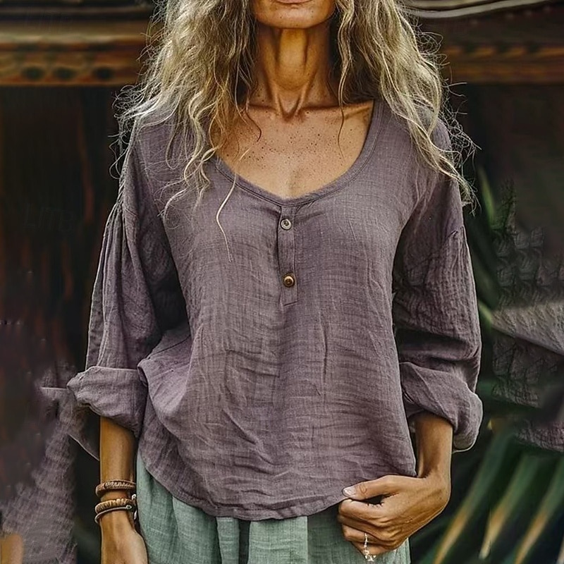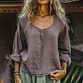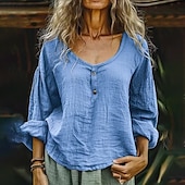 More information about Women's Shirt Blouse Cotton Linen Shirts Plain Basic current Casual Long Sleeve Crew Neck Regular Tops Daily Holiday Going out Buttons Light Green Purple Gray Light Blue Summer