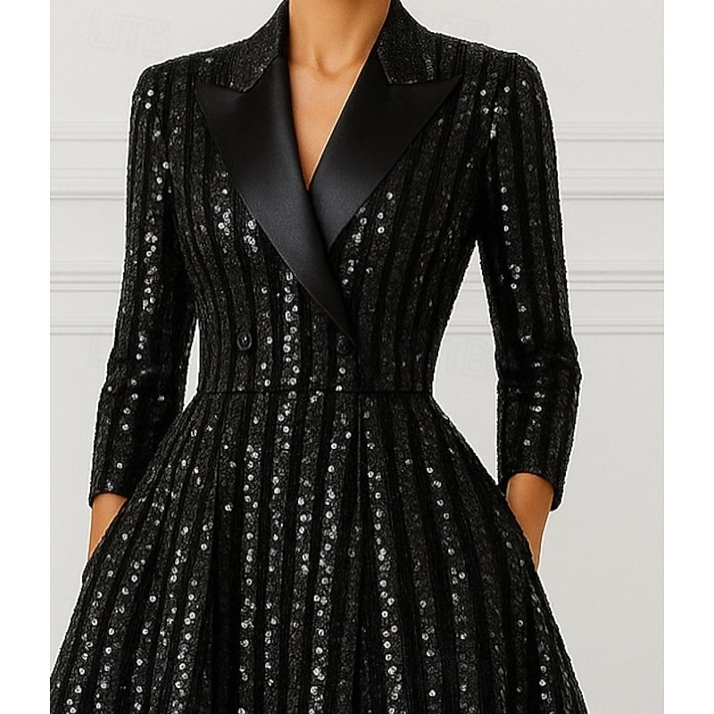 $154.99 - Black Sequin Tuxedo Dress Blazer A-Line Formal Wedding Wedding Guest Satin Elegant Vintage 3/4 Length Sleeve Floor Length Notched Lapels Zipper 2025. Shop for cheap Tuxedo Dresses online? Buy at lightinthebox.com on sale today!