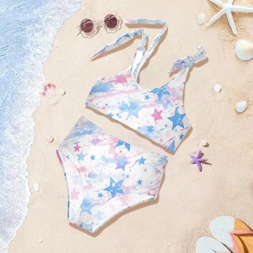 4th July American Independence Day Watercolor Girl Two Piece Kids Bikini Set prompt-Dry Swimsuit Swimwear Adjustable