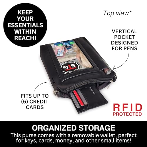 • STAY CONNECTED & ORGANIZED ON-THE-GO - Our large crossbody purse brings fun to your style along with unparalleled convenience to daily activities. It features a unique, see-through touch screen window, ensuring that your smartphone – whether making calls, answering texts, or browsing social media – is at your fingertips, without the need to remove it.