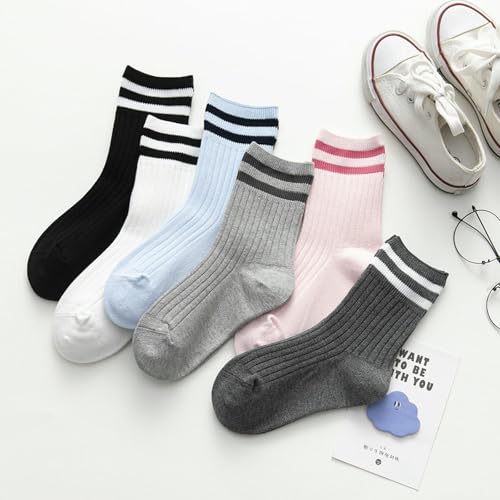 5 pairs - 's solid color comfortable breathable double-needle combed cotton three-bar mid-tube socks 6