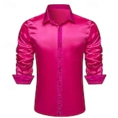More information about Men's Shirt Silk Like Satin Shirt Casual Shirt Button Up Shirt Prom Shirt Plain Formal Wedding Pink Long Sleeve Lapel Spring & Fall All Seasons Clothing Apparel