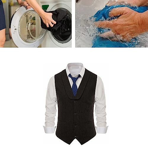 Herringbone Tweed Suit Vest for Men,Shawl Collar Business Single-Breasted Waistcoat,Wedding,Dinner (Color : Black, Size : Medium) 5