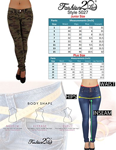 Women`s Plus/Junior Size Classic 5 Pockets Camouflage Skinny Jeans 2