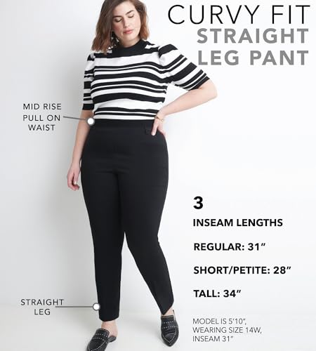 HOT ! Rekucci Curvy Woman Ease into Comfort Plus Size Straight Pant w/Tummy Control (20W Short, DK Charcoal)