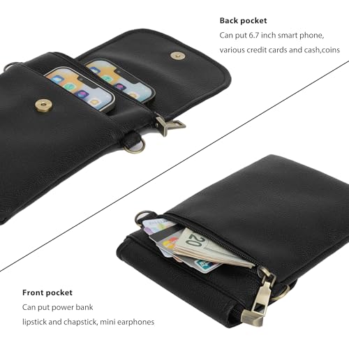 • Large capacity - Dimension of the phone pouch: 7.8"(19.5 cm) * 5.5''(14 cm) * 2.3''(6 cm), it fits up to 6.9", such as fit for iphone 12,13,14,15 pro max, ect. As long as your phone is small than this dimension, no matter what kinds of phone can fit it.