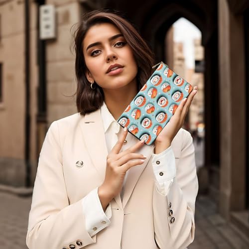 • Ideal Size: Measuring 8x4.3x0.9 inches, this medium size wallets for women perfectly fits in your hand or purse, offering handy portability. Our Cartoon Salmon Sushi Print wallet purse combines practicality with style, making it a cute wallets for women that's both chic and functional
