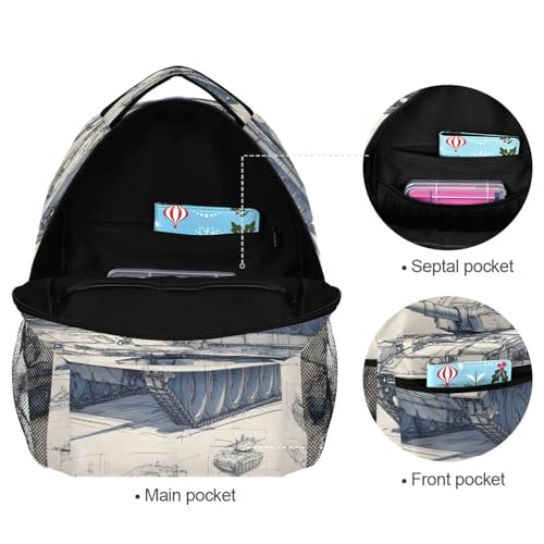 Backpack Tank Design Paper Daypack Shoulder Bag Book Bag Lightweight Back Pack 12 ×16.9 In 6