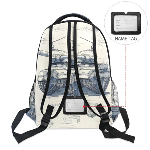 Backpack Tank Design Paper Daypack Shoulder Bag Book Bag Lightweight Back Pack 12 ×16.9 In 4