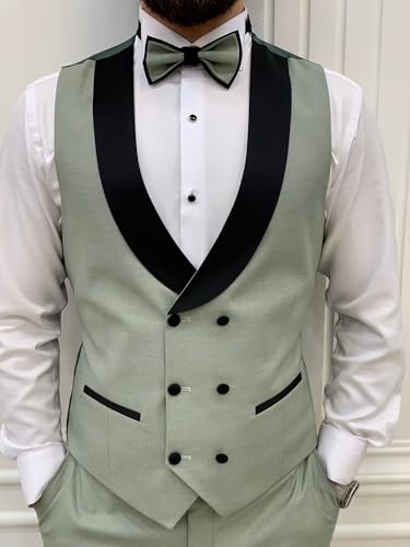 Slim Fit 3 Piece Men's Suits Set V-Neck Double Breasted Vest Formal Wedding Tuxedo Business Solid Blazer Pants 3