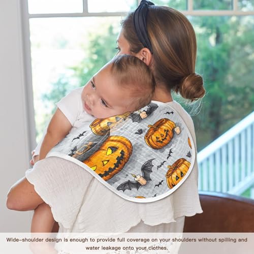 Muslin Burp Cloth for Baby 2PCS Halloween Pumpkins Super Absorbent Burping Cloths, Bibs for Newborn Boys Girls 6