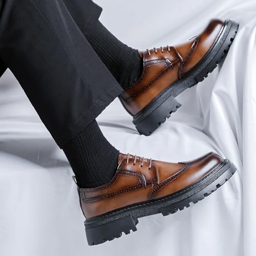 Men's Wingtip Chunky Heel Dress Oxford Shoes Vintage Comfor Platform Lace-Up Casual Brogue Loafers Formal Anti-Slip Derby Shoes 6