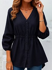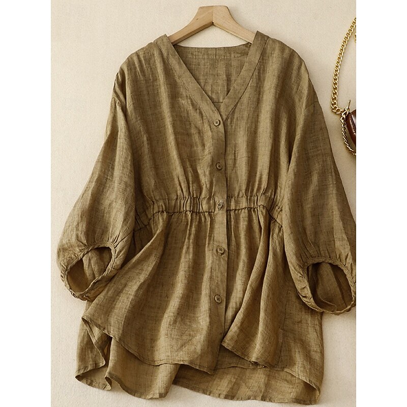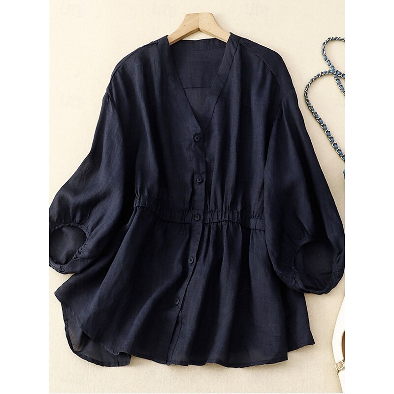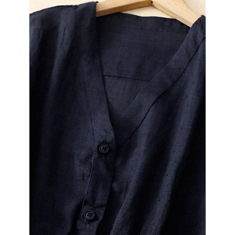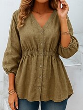 This Women's Cotton Linen Shirts Solid Color Basic Casual 3/4 Length Sleeve V Neck Regular Tops Daily Buttons Blue Khaki Apricot Summer Spring combines elegant design with practical functionality. Every detail has been carefully considered to ensure you get the finest possible experience. The superior construction means this product will serve you well for years to come.