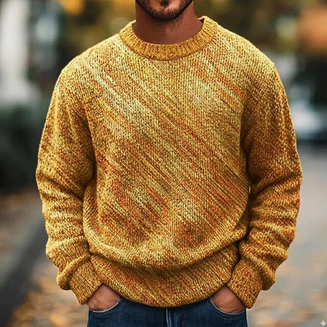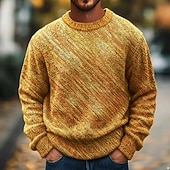 More information about Men's Color Block Pullover Sweater Jumper Knitwear Crewneck Retro Vintage Casual Vacation Home Street 3D Print Knitting Keep Warm Long Sleeve Spring Fall Winter Yellow Multi Color
