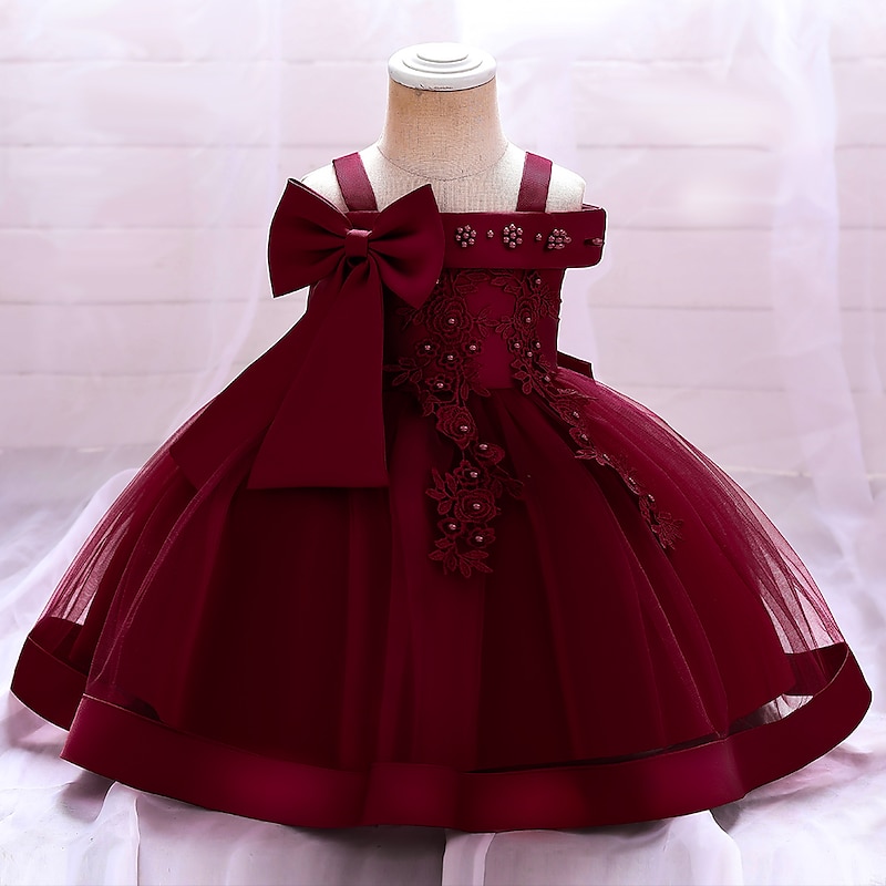 More information about Kids Girls' Dress Solid Colored Flower Short Sleeve Party Daily Embroidered Bow Cute Princess Polyester Midi Floral Embroidery Dress Skater Dress Tulle Dress Summer Spring 2-8 Years Yellow Pink Wine