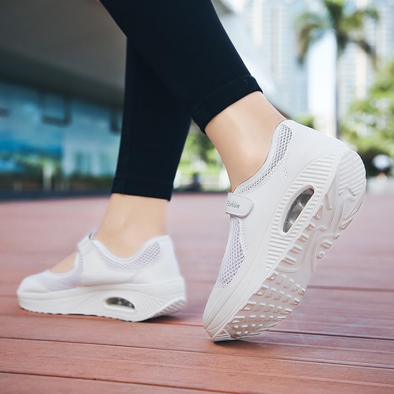 Women's Mesh Air Cushion Adjustable Nurse Shoes Comfortable Hollow Breathable Working Orthotic Wedges Mary Jane Lightweight Out Granny Non-Slip Walking Shoe 4