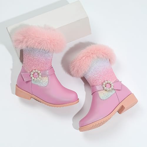 IWIHMIV Girl Winter Boots Toddler Girl Winter Boots Toddler Girl High Boots Kids Snow Boots Girls Mid Calf Warm Winter Boots 4