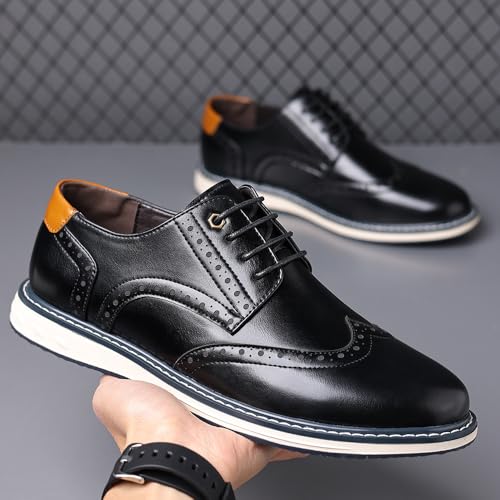 Men's Leather Wing Tip Patchwork Walking Gatsby Brogues Fashion Flat Round Toe Lace Up Work Dress Derby Shoes for Business Leisure Daily 5