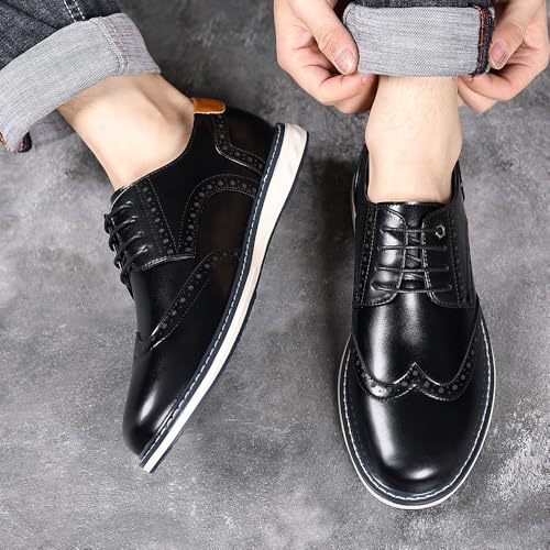 Men's Leather Wing Tip Patchwork Walking Gatsby Brogues Fashion Flat Round Toe Lace Up Work Dress Derby Shoes for Business Leisure Daily 6