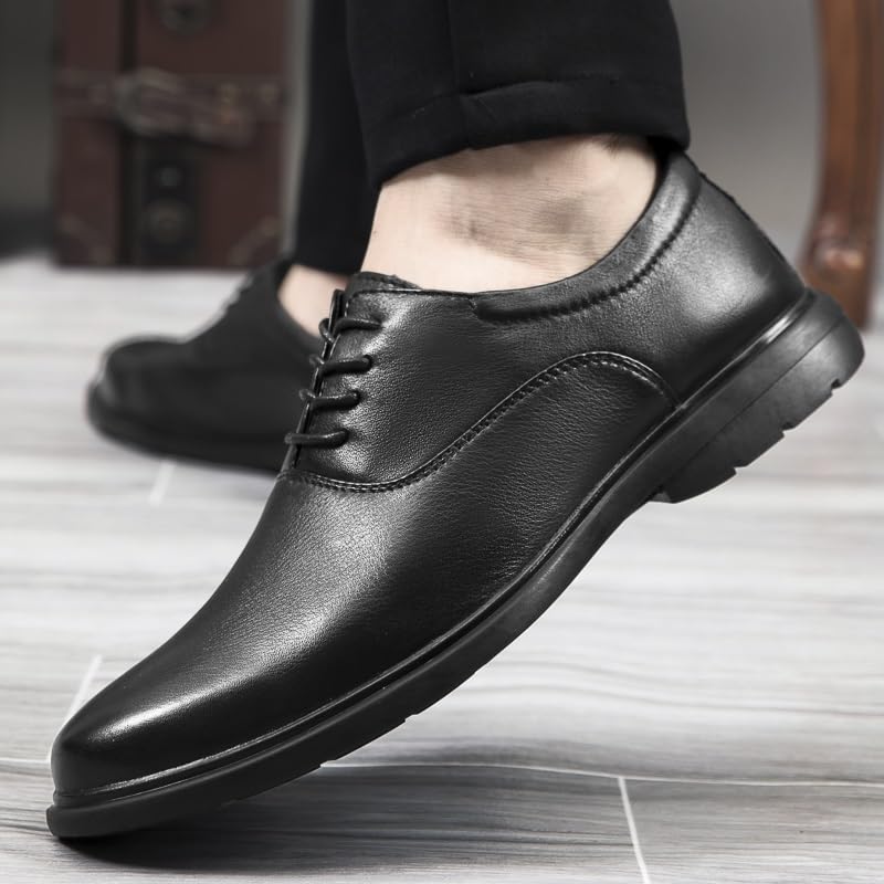 HOT ! Dress Oxford Shoes for Men Lace Up Round Toe Leather Solid Color Oxford Shoes Block Heel Rubber Sole Resistant Non Slip Party