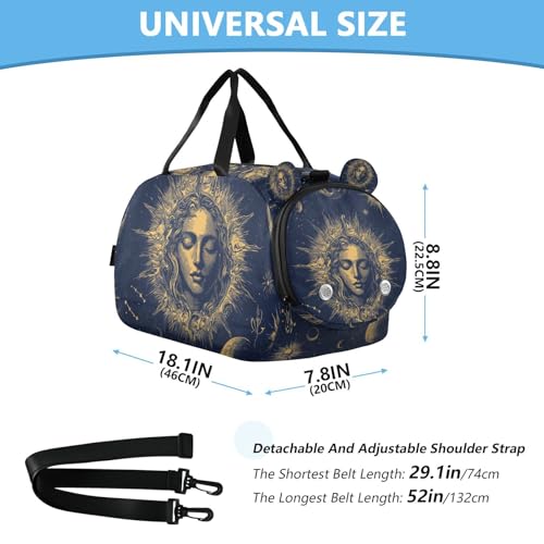 More information about Duffle Bag for Boys or Girls with Shoes Compartment, Vintage Celestial Star Sun Sports Travel Bag Overnight