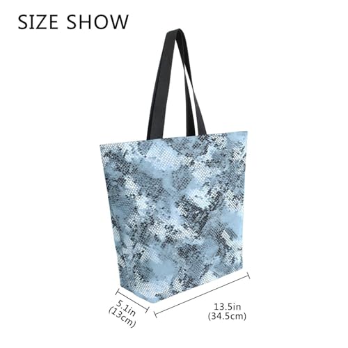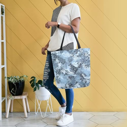 Extra Large Shoulder Tote Bag for Travel Beach Weekender Gym Blue Snake Skin Pattern Reusable Grocery Canvas Shopping Bag