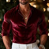 More information about Men's Shirt Pink Wine Blue Green Long Sleeve Solid Color Plain Shirt Collar Carnival Christmas Buttons Clothing Apparel Christmas Elegant Warm Active