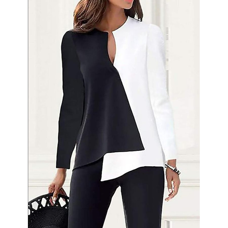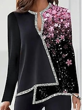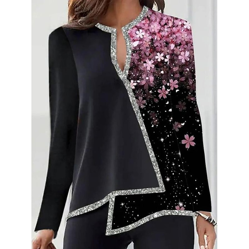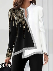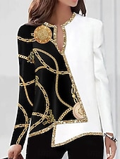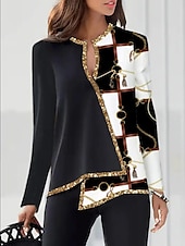 More information about Women's Plus Size Blouse Elegant Vintage Fashion Color Block Print Regular Tops V Neck Work Casual Black White Wine Red Gold Spring Fall