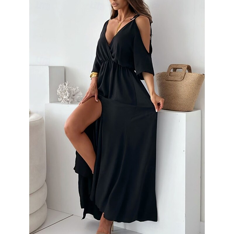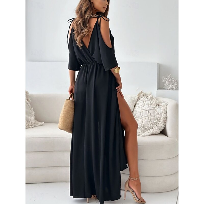 More information about Women's Long Dress Maxi Dress Cocktail Dress Wedding Guest Dress Chiffon Swing Dress Fashion Modern Outdoor Vacation Weekend Regular Fit Plain Half Sleeve V Neck Black Red Fuchsia Summer Spring