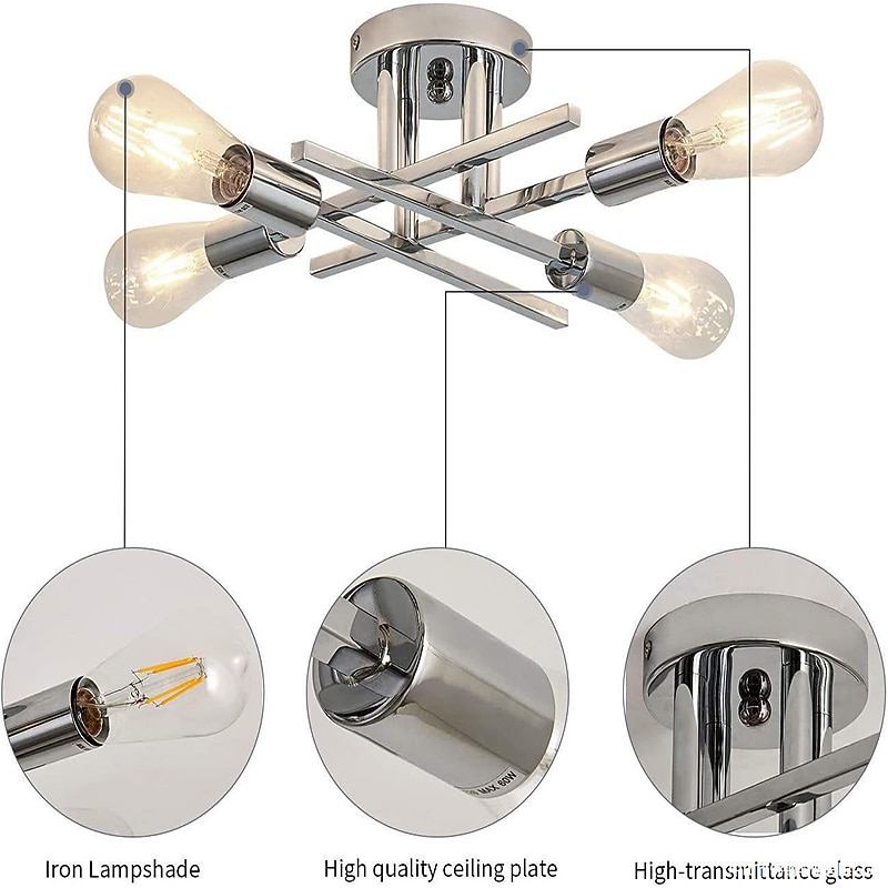 LED Ceiling Light 4-Light 38cm Nordic Style Chandelier Sputnik Design Metal Artistic Style Industrial Painted Finishes Kitchen Bedroom Kids Room Lights Warm White 110-240V 5