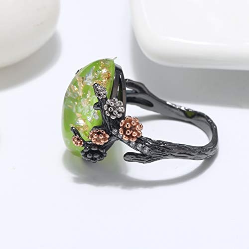 • Create a Fairytale - Fantasy Witchy Solitaire Tree Branch Rose Gold Plated Flowers Vintage Fashion Ring Simulated Opal Crystal Like Black Resign Stone Plated over Copper Rings by the Ginger Lyne Collection