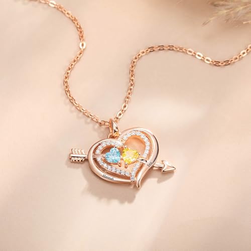 HOT ! callie Personalized Heart Arrow 925 Sterling Silver Necklace for Women, Custom 2 Birthstones & Names Pendant, Birthday Valentine's Day Anniversary Jewelry Gift for Her
