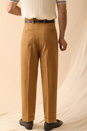 • FEATURES: Cotton linen trousers for summer, double pleated dress pants, regular fit straight fit, zipper closure, casual/formal/business men's pants.