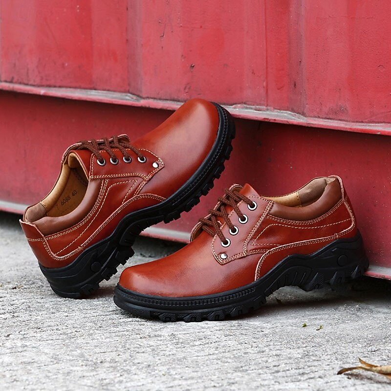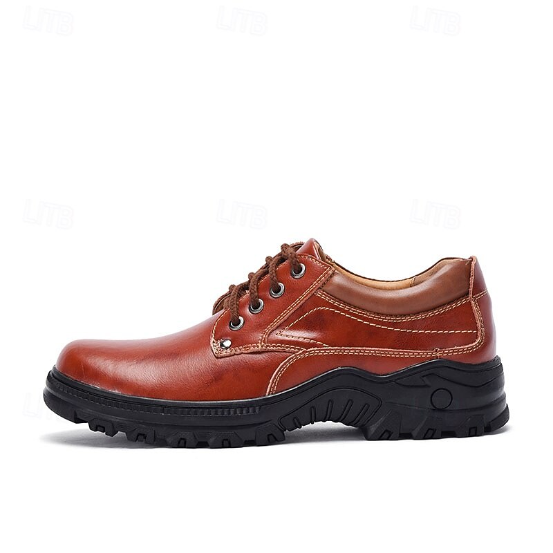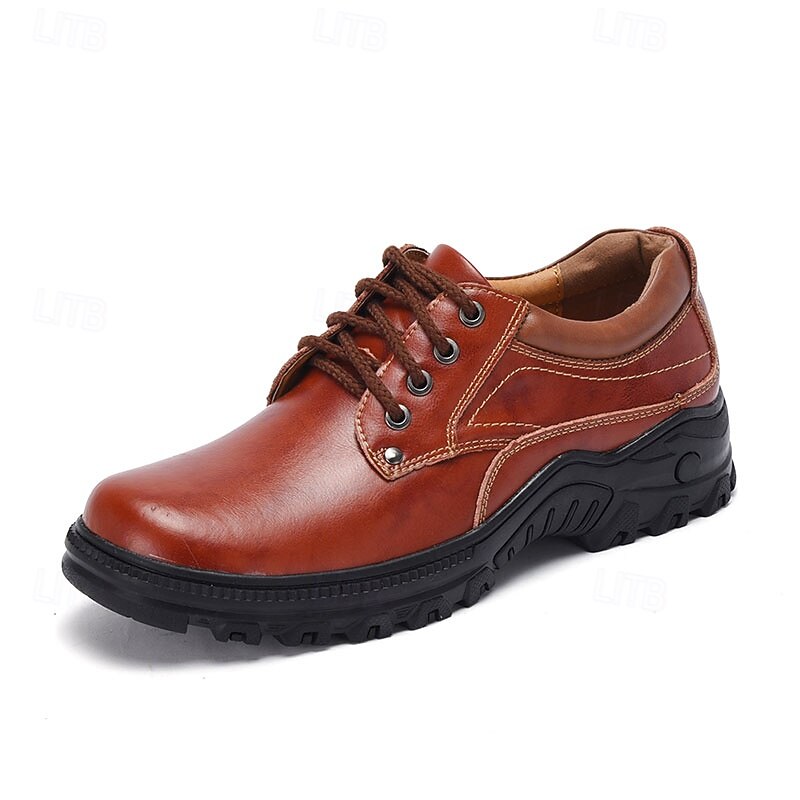 HOT ! Men's Red-Brown Lace-Up Shoes with Cushioned Memory Foam Soles - Stylish and Supportive for Business Casual Outfits and Weekend Getaways