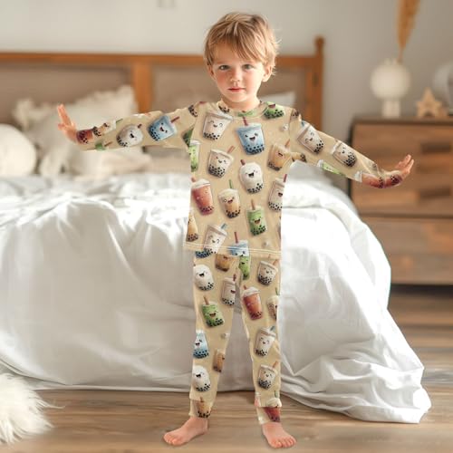 Pajama Sets Long Sleeve Cute Bubble Tea Pattern Soft Comfy Sleepwear 2 Piece PJS 3-8T 2